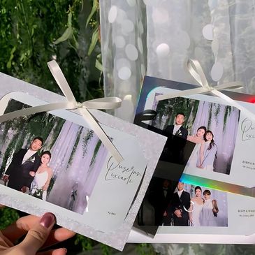 Create a lasting memory with a custom guest book that captures all your guests’ fun moments and heartfelt messages. Each photo strip taken at your event is added to the book alongside a personal note, giving you a unique keepsake to treasure for years to come. Stationery will be provided at the event.